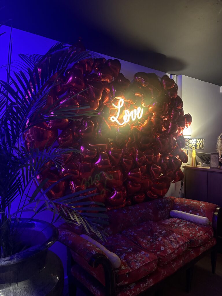 À l’occasion de la Saint-Valentin, Ina’Event a sublimé le restaurant Sya avec une magnifique arche en forme de cœur, composée de ballons rouge vif et illuminée d’un néon “Love”