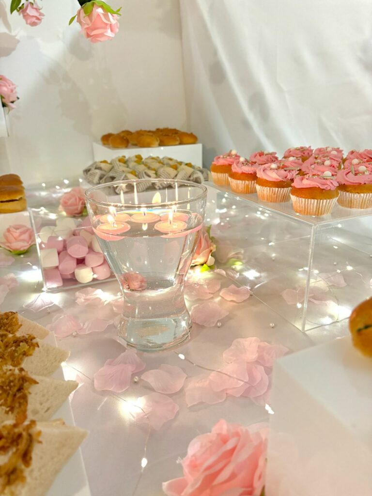 Une décoration raffinée pensée spécialement pour une soirée entre filles, où le rose poudré, les roses suspendues et les petites lumières scintillantes ont créé une atmosphère à la fois chic et chaleureuse.